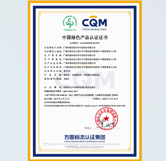 中国绿色产品认证证书