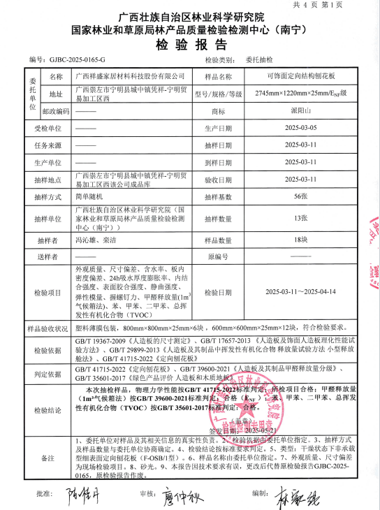 可饰面定向刨花板检验报告