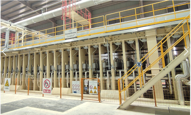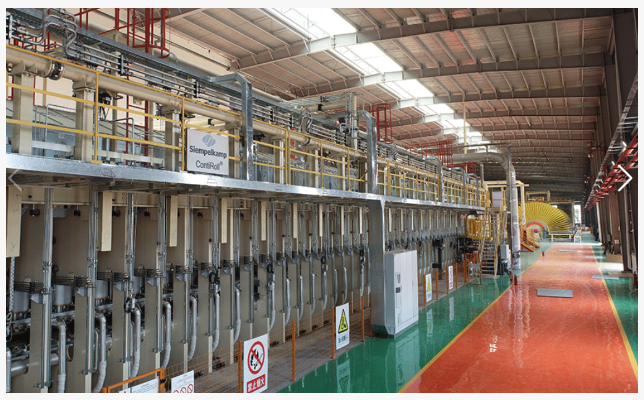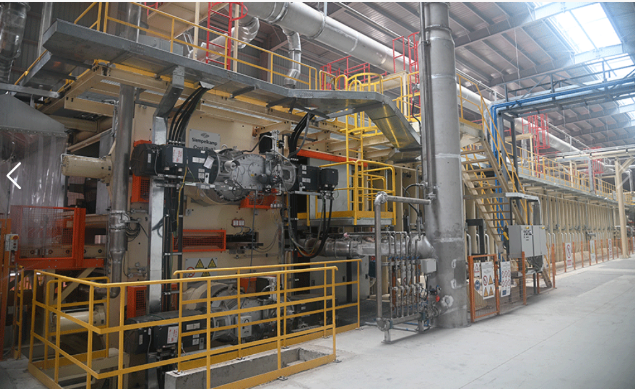 全线引进最新一代辛北尔康普ContiRolIlR连续热压机,长40.4米,可生产6mm—40mm不同厚度、规格的定制化、个性化产品。该热压机具有专利保护的挠性入口系统,实现压机入口段排气效果更佳,加压距离更短、上下板面热量传导更快,确保产品性能更加稳定。独有的横向6线厚度公差在线自动调整系统,可实现产品厚度控制在最小偏差。连续压机是整条生产线的核心设备,自动化程度高,通过人机界面,调整不同工艺参数,可生产不同规格不同性能的板材。