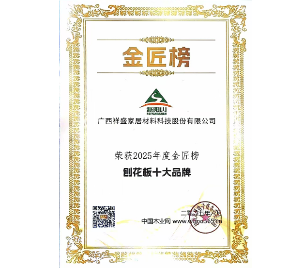 品质为基 创新为先|派阳山板材再度荣膺金匠榜“刨花板十大品牌”荣誉